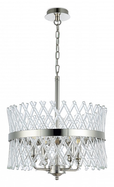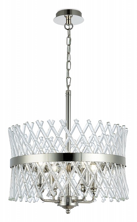 Подвес из тонкого металла цвета глянцевый никель и стеклянных трубочек D440mm, H440-1390mm, 4хЕ14
