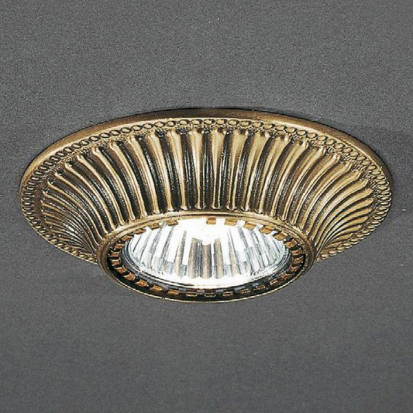 Встраиваемый светильник SPOT 1078 BRONZO из коллекции 1078 итальянского бренда Reccagni Angelo для установки в гостиную, кабинет, коридор, прихожую или спальню. Основание светильника бронзовое состаренное матовое из латуни. Модель оснащена лампой с цоколем GU10, максимальной мощностью 50W. Габариты светильника: глубина – 30 мм, диаметр – 100 мм, выступ – 20 мм, высота – 50 мм.