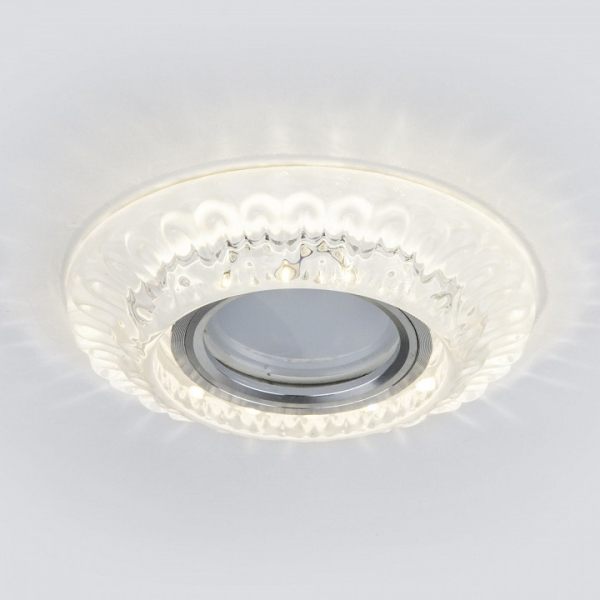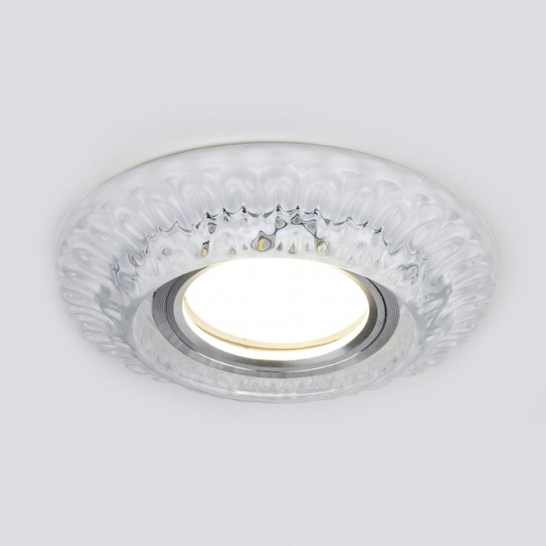 Цоколь GU5.3 с максимальной мощностью лампы 35 Вт в который подойдут лампы типа галогеновая или светодиодная (LED). Материал арматуры: стекло.