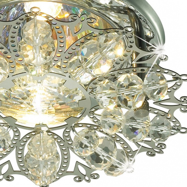 Светильник сделан из металла. Это популярный и востребованный материал благодаря ряду качеств. К ним относится: повышенная прочность, износостойкость и долговечность. Декоративные бусины произведены из хрусталя. Хрусталь обладает высоким показателем плотности, прозрачности и блеска. Благодаря содержанию свинца (не менее 30%) и определённому подбору углов, образуемых гранями, изделия из хрусталя отличаются необыкновенно яркой, многоцветной игрой света, чарующей магией красоты, совершенства и роскоши.