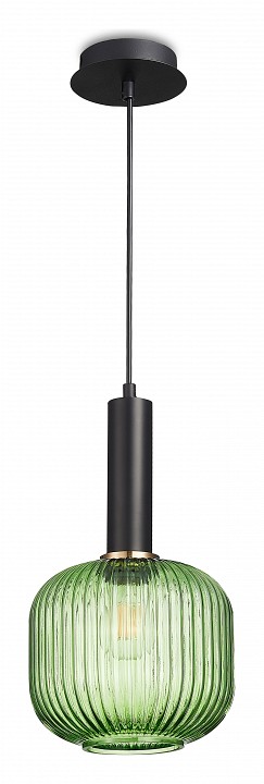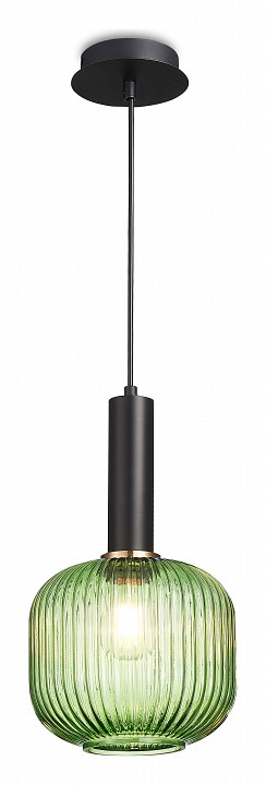 Подвес из металла черного цвета с рифленым стеклянным зеленым плафоном. D200mm, H330-1855mm, 1хE27