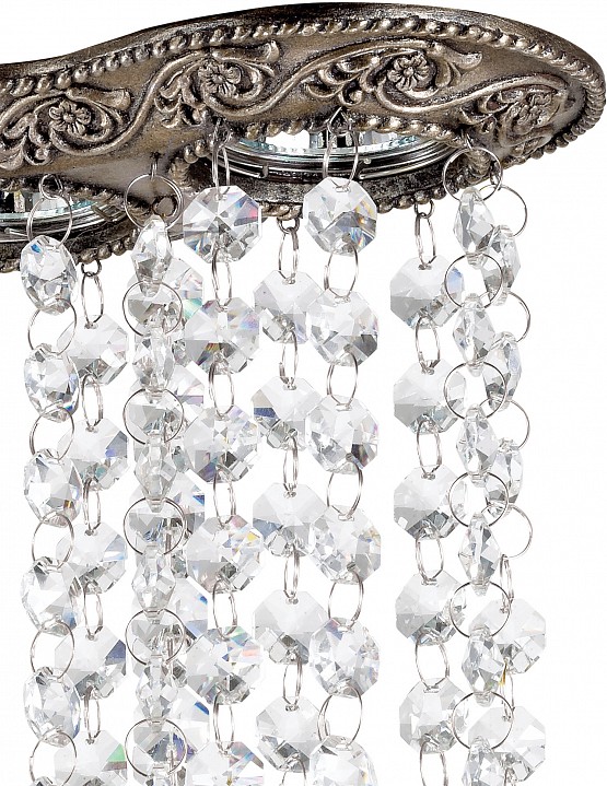 Основание светильника произведён из натурального камня песчаника. Его главные преимущества - долговечность, уникальные экологические и бактерицидные качества, чистота цвета, однородность структуры, малое влагопоглощение. Подвески сделаны из хрусталя. Он обладает высоким показателем плотности, прозрачности и блеска. Благодаря содержанию свинца (не менее 30%) и определённому подбору углов, образуемых гранями, изделия из хрусталя отличаются необыкновенно яркой, многоцветной игрой света, чарующей магией красоты, совершенства и роскоши.