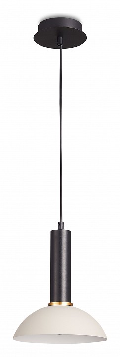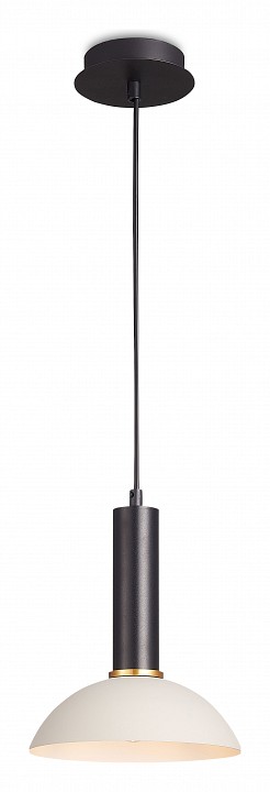 Подвес с черной потолочной чашей и черным проводом, верхней частью черного цвета и плафоном из металла серого цвета снаружи и белого внутри. Без рассеивателя. D230mm, H285-1785mm. 1ХЕ27