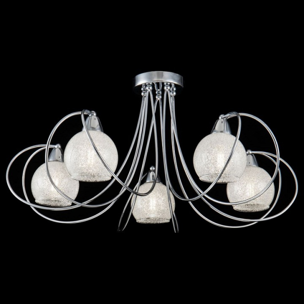 Современные светильники необычного дизайна. Изгибы металлической арматуры повторяют форму плафонов, сделанных из прозрачного стекла с эффектом заморозки (внутри плафоны обсыпаны кристаллами). Благодаря своей светлой цветовой гамме светильники Dana подходят для любых современных интерьеров.