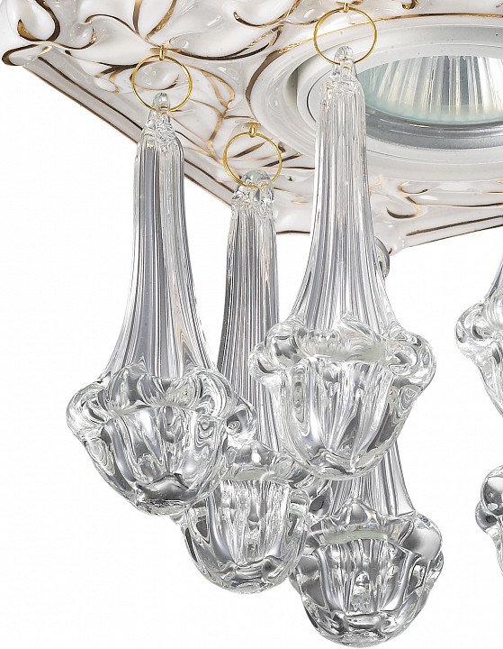 цвет плафона неокрашенный, цвет арматуры белый, золото. Лампы в комплекте: отсутствуют. Светильник имеет слабую защиту от влаги и пыли — IP20 и предназначен для использования в домашних интерьерах с умеренной влажностью.
