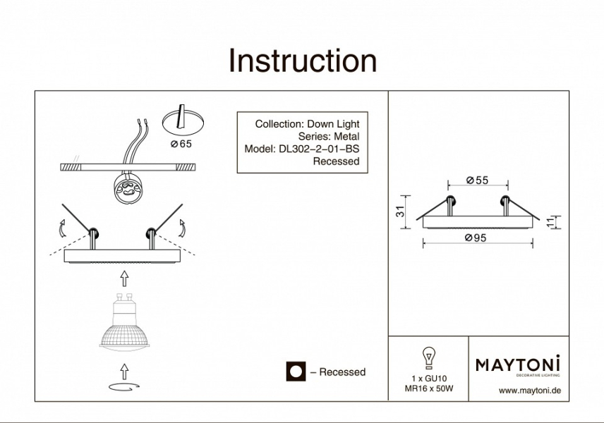 Встраиваемый светильник Maytoni Metal DL302-2-01-BS
