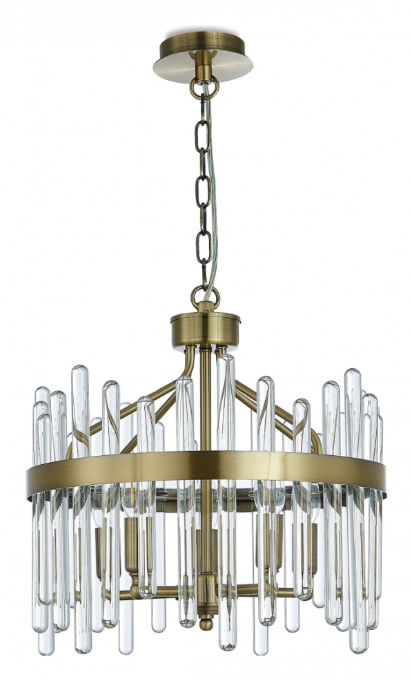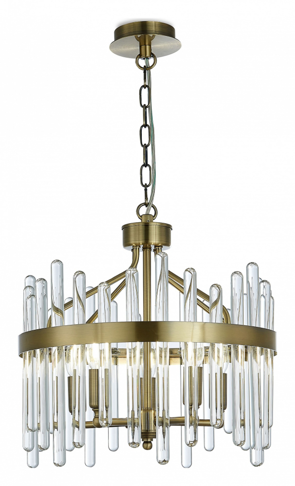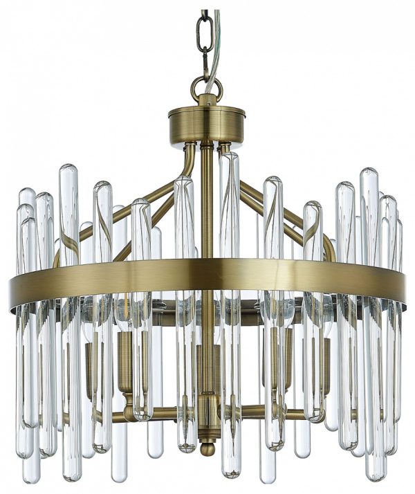 Подвес из металла цвета бронза и цельных стеклянных трубочек.D420mm, H380-1330mm, 5хЕ14
