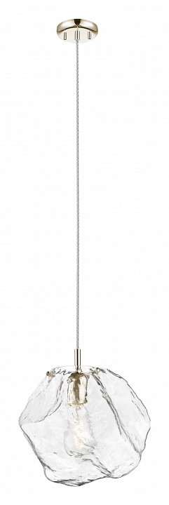 Оригинальный подвес на круглом основании из металла цвета золото с прозрачными проводами и стеклянным плафоном, напоминающим прозрачную глыбу льда. 1хЕ27