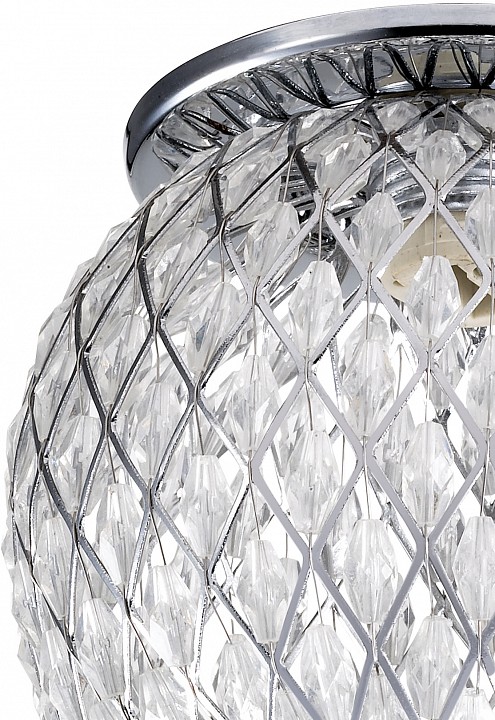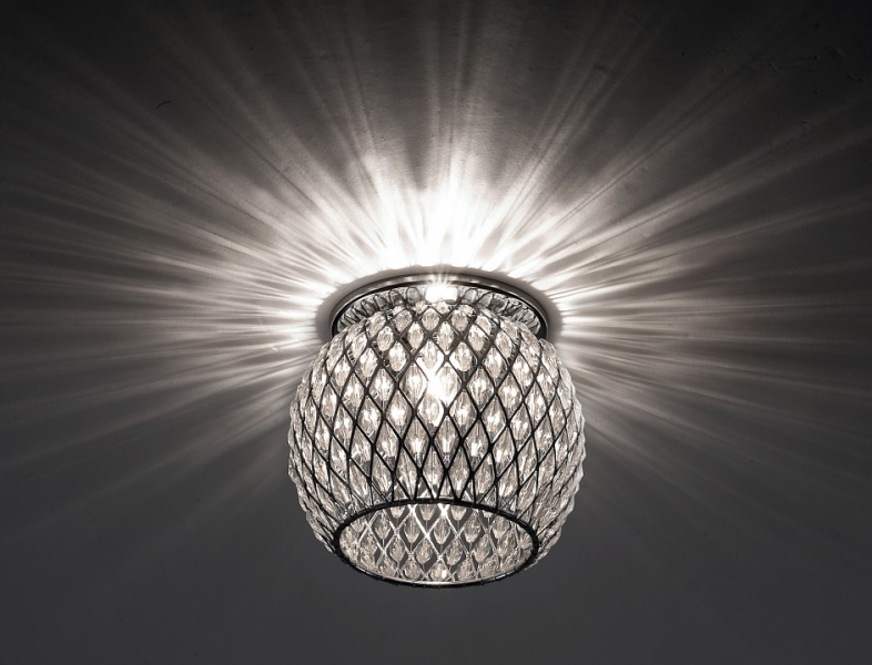 Светильник сделан из металла. Это популярный и востребованный материал благодаря ряду качеств. К ним относится: повышенная прочность, износостойкость и долговечность. Декоративные бусинки сделаны из хрусталя. Он обладает высоким показателем плотности, прозрачности и блеска. Благодаря содержанию свинца (не менее 30%). Огранка хрусталя, подобно огранке драгоценных камней, позволяет в полной мере проявить свойства, обусловленные большим показателем преломления и дисперсией.