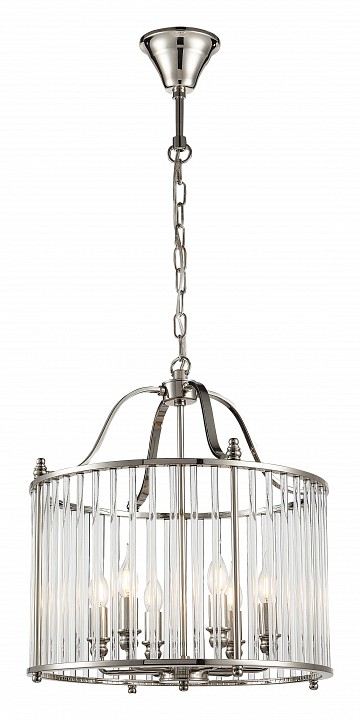 Подвес из тонкого металла цвета глянцевый никель и стеклянных трубочек зафиксированных сверху и снизу. 6хЕ14