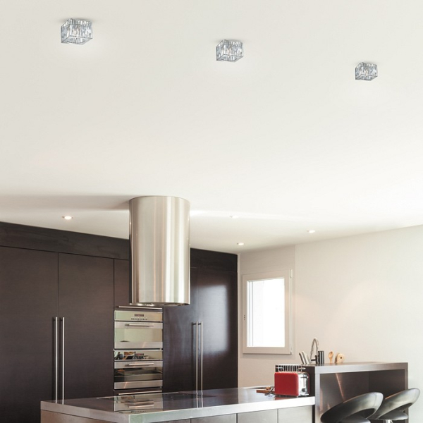 Форма плафона призма прямоугольная, цвет плафона неокрашенный, цвет арматуры хром. Лампы в комплекте: отсутствуют. Светильник имеет слабую защиту от влаги и пыли — IP20 и предназначен для использования в домашних интерьерах с умеренной влажностью.