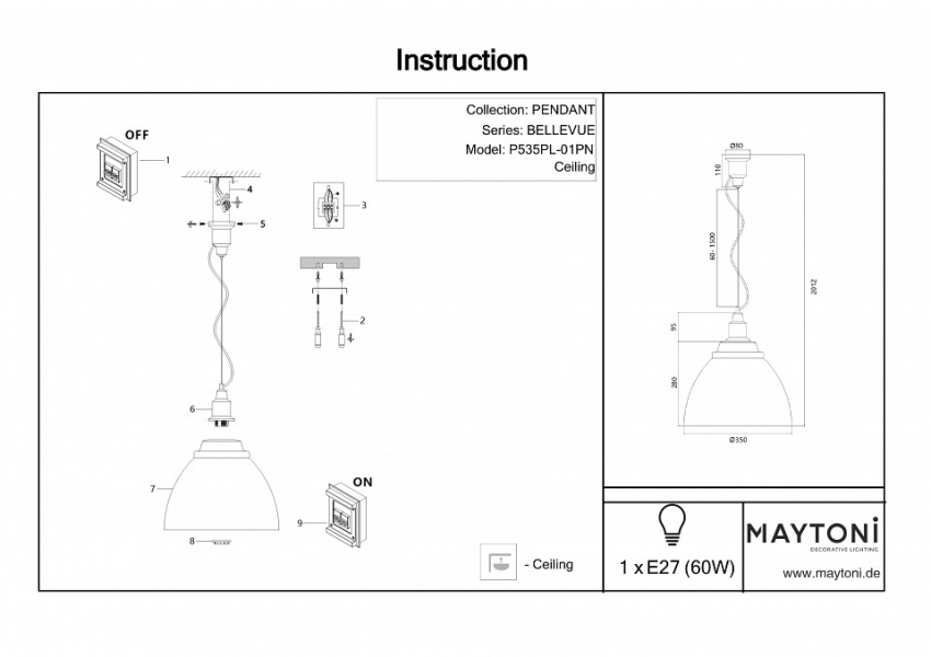 Подвесной светильник Maytoni Bellevue P535PL-01PN
