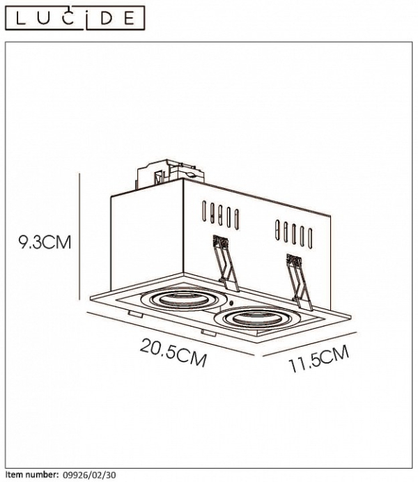 Встраиваемый светильник 09926/02/30 из коллекции Chimney бельгийского бренда Lucide для установки в гостиную, кабинет, коридор, прихожую или спальню. Основание светильника черное матовое из дюралюминия. Модель оснащена лампами с цоколем 2xGU10, общей мощностью 100W. Крепление к потолку на прижимных скобах. Габариты светильника: глубина – 90 мм, длина – 200 мм, ширина – 106 мм. Размер врезного отверстия – 95 мм.