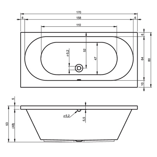 Акриловая ванна Riho Carolina 170x80 B055001005+207093 с ножками