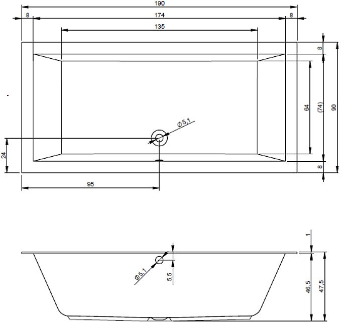 Акриловая ванна Riho Lugo 200x90 B137001005+207095 с ножками