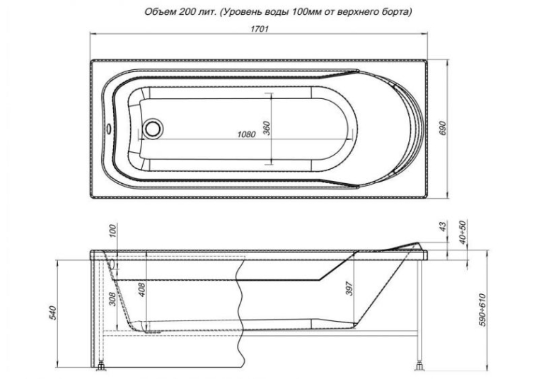 Акриловая ванна Aquanet West 170x70 с каркасом 00239757+00183557