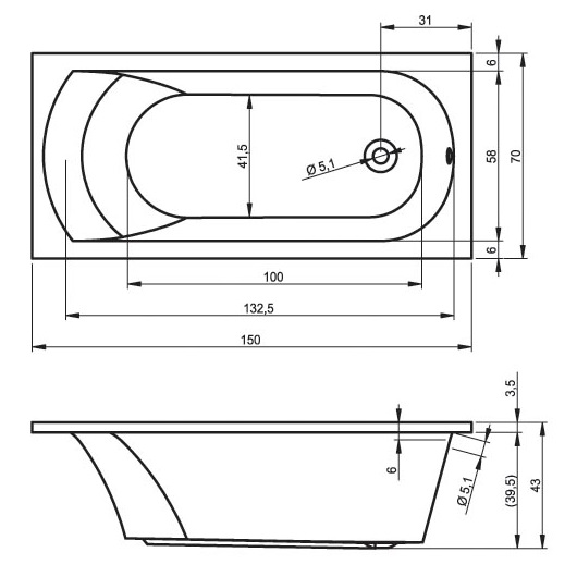 Акриловая ванна Riho Miami 150x70 B058001005+207093 с ножками