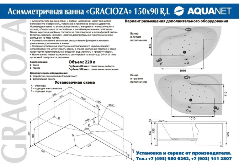 Дополнительно необходимо выбрать фронтальную и/или боковую панель и слив-перелив с сифоном. Рекомендуем к покупке слив-перелив для ванны Ани Пласт EMS701 (артикул EMS701).