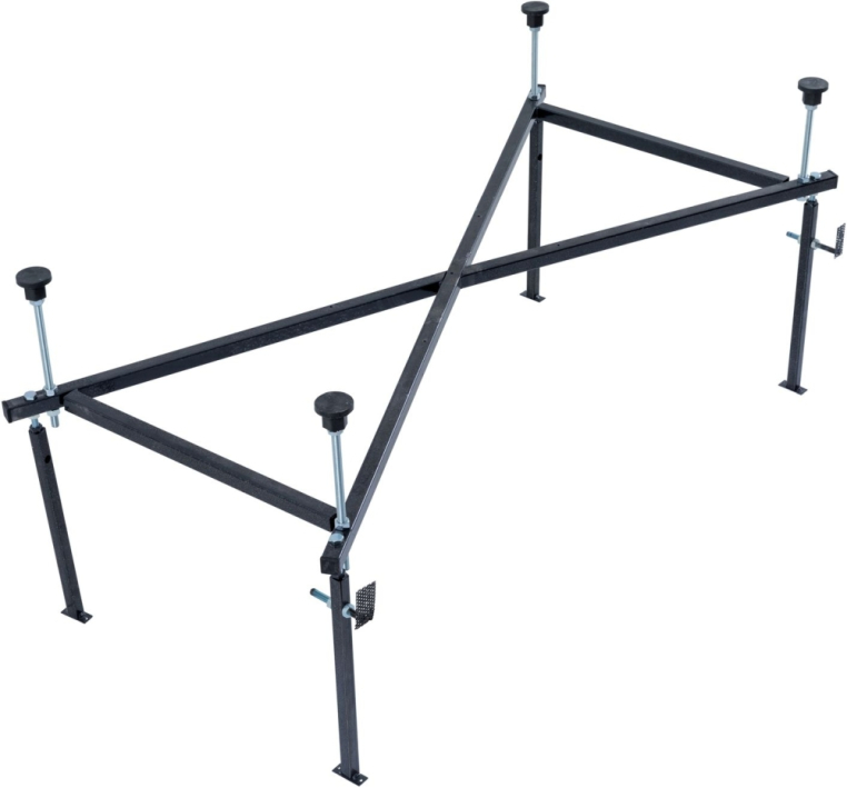Ванна уже установлена на жесткий сварной каркас из металлического профиля. Металлические детали каркаса подвергаются трехступенчатой обработке, когда сначала профильная труба проходит абразивную зачистку на специальном станке, после чего готовые детали обрабатывают каустической содой, и, просушив, покрывают с помощью электростатического распылителя молотковой краской по металлу. Это гарантирует равномерность окрашивания и стойкость покрытия.