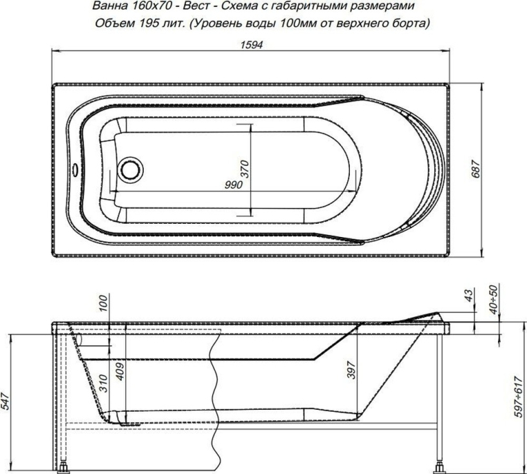 Акриловая ванна Aquanet West 160x70 — прекрасный выбор модели эконом-класса сраднего размера. На первый взгляд она напоминает своей формой модели Nord. Тот же эргономичный силуэт с рассчитанным углом наклона задней стенки, которая позволяет удобно расположиться в ней даже человеку высокого роста. Тот же специальный выступ для подголовника, те же компактные площадки по углам ванны, которые можно приспособить под размещение банных принадлежностей. И та же белоснежная поверхность сантехакрила, которая роднит все ванны Aquanet. И все же разница есть. Она дешевле. Причем, на низкую цену повлияли вполне объективные вещи. Так, для изготовления ванны West использован акрил толщиной 4 мм, что всего на 1 мм меньше, чем остальные модели. Также ее глубина на 5 см меньше, чем у ближайших родственников из коллекции Nord.