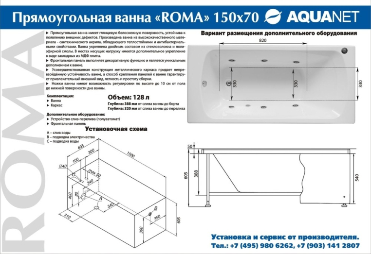 Дополнительно необходимо выбрать фронтальную и/или боковую панель и слив-перелив с сифоном. Рекомендуем к покупке слив-перелив для ванны Ани Пласт EMS701 (артикул EMS701).