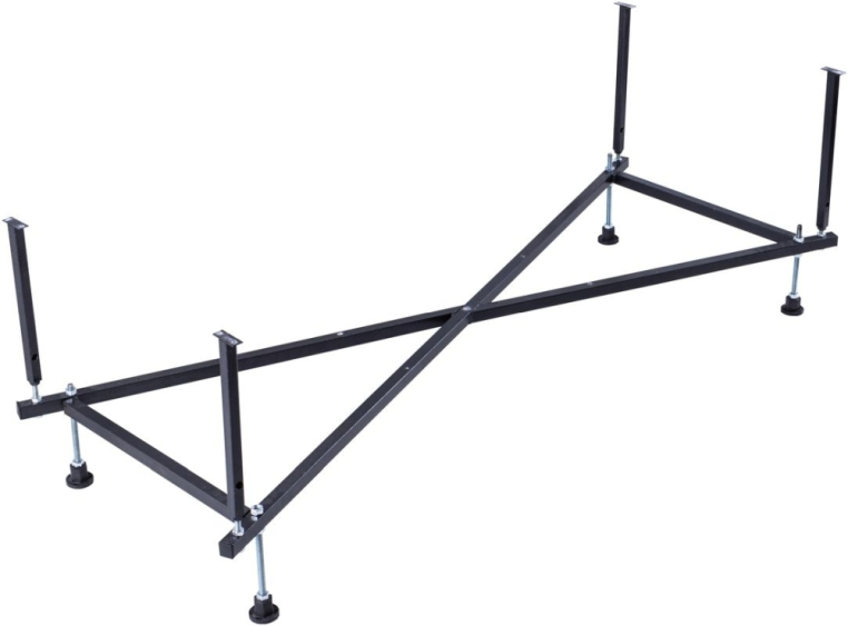 Ванна уже установлена на жесткий сварной каркас из металлического профиля. Металлические детали каркаса подвергаются трехступенчатой обработке, когда сначала профильная труба проходит абразивную зачистку на специальном станке, после чего готовые детали обрабатывают каустической содой, и, просушив, покрывают с помощью электростатического распылителя молотковой краской по металлу. Это гарантирует равномерность окрашивания и стойкость покрытия.