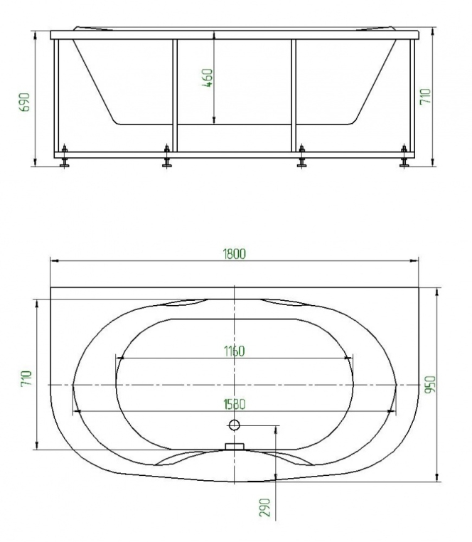Акриловая ванна Aquatek Мелисса 180x95 MEL180-0000011 фронтальный+боковые экраны 2 шт.