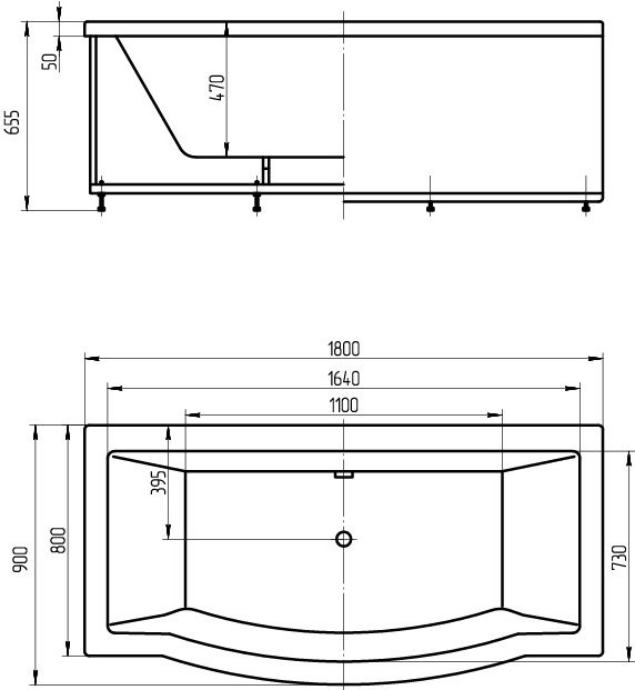 Ванна устанавливается на каркас, который поставляется в комплекте