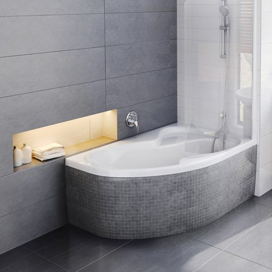 Асимметричная ванна Ravak Rosa II от популярного чешского бренда украсит интерьер ванной комнаты. С помощью угловой конструкции можно легко решить сразу две задачи - сэкономить пространство комнаты и заполнить свободный угол. Модель имеет необычную форму и эргономичную переднюю панель, которая облегчает доступ к ванне. Зона принятия душа отличается широким плоским дном и интегрированным сиденьем, что позволяет принимать душ как стоя, так и сидя. Для максимального комфорта можно дополнить гидромассажем. Изделие выполнено из акрила, который обладает высокой теплоёмкостью, долго не позволяя воде остывать, и способностью поглощать шум при наборе воды, на этой ванне не появляются царапины, она не темнеет и не ржавеет.