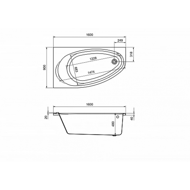 Акриловая ванна Roca Corfu 160x90 L 248573000.