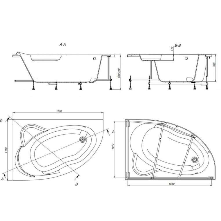 Акриловая ванна Roca Luna 170x115 см 248640000 левая