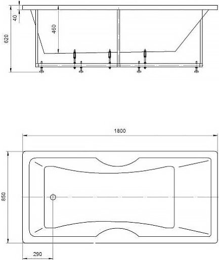 Ванна устанавливается на каркас, который поставляется в комплекте