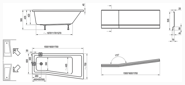 Акриловая ванна Ravak Be Happy II 170x75 L C941000000 (левая)