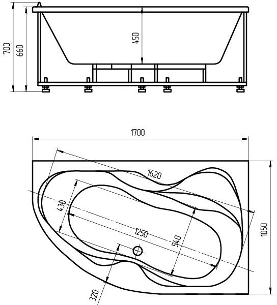 Акриловая ванна Aquatek Вега 170х105 VEG170-0000084 (левая, без гидромассажа, без фронтального экрана)