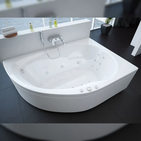 Размер ванны Вирго 150х100 позволяет расположить ее и в маленьких ванных комнатах. Благодаря угловой асимметричной форме ванны Вы сможете разместить в ванной умывальник, стиральную машину, полотенцесушитель. Вместе с компактными внешними габаритами ванна довольно объемная – около 250 л. Оптимальное решение для экономии пространства. Возможно как левое, так и правое исполнение.