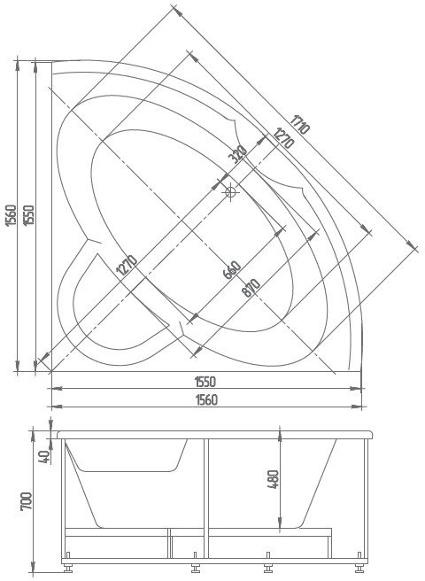 Ванна Поларис представлена в двух вариантах, отличающихся размером и количеством форсунок. Размер ванны Поларис 2:155х155 см. Несмотря на внушительные размеры, пространство Вашей ванной комнаты используется максимально экономично. Ванна выглядит очень стильно и современно.