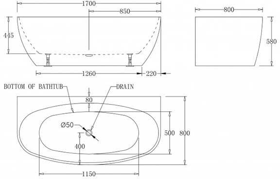 Отдельно стоящая, овальная акриловая ванна BelBagno 170х80 BB83-1700 в комплекте со сливом-переливом цвета хром.