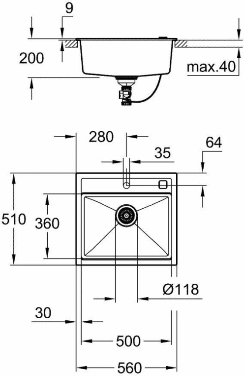 • Монтаж встраиваемый сверху