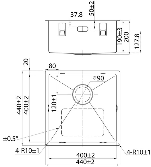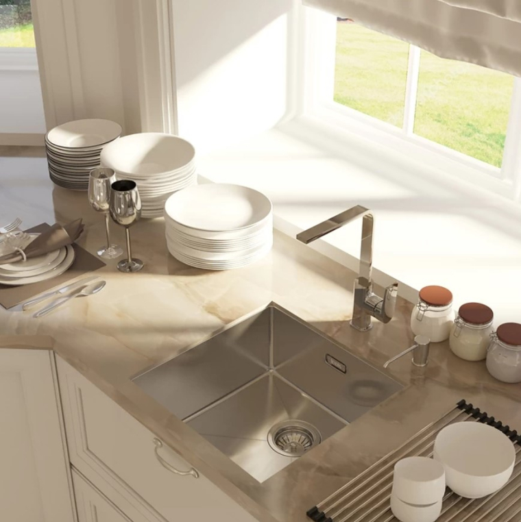 Мойка, нержавеющая сталь, марки AISI 304, поверхность матовая. Размер: 440х440 мм, глубина 200 мм. Ширина шкафа: от 50 см В комплекте: механический выпуск, крепления