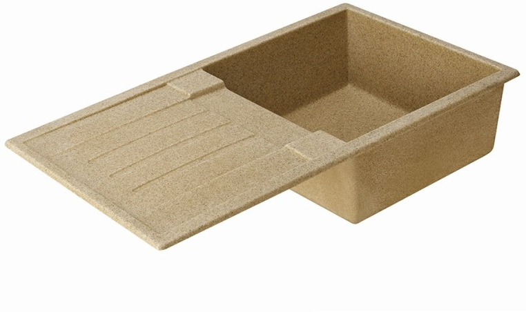 Кухонная мойка в современном дизайне из литого мрамора с одной чашей и крылом.