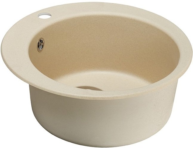 Классическая кухонная мойка из литого мрамора круглой формы.