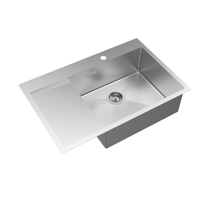Мойки Haze отличаются современным дизайном и ручной технологией производства, что позволяет добиться идеальной геометрии – малый радиус закругления углов увеличивает рабочее пространство и помогает избежать «мертвых зон». Выполнение повседневных задач становится еще проще: в мойке удобно разместить большое количество посуды и мыть крупные предметы, такие как противень. Вместительное крыло слева от чаши возьмет на себя функцию сушки чистой посуды, а плоский сифон поможет сэкономить полезное пространство. Подходит для кухонных тумб от 55 см.