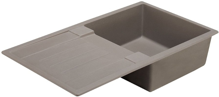 Кухонная мойка в современном дизайне из литого мрамора с одной чашей и крылом.
