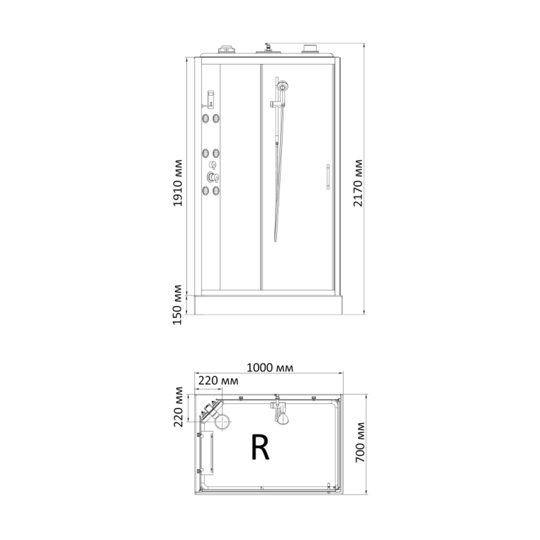 Душевая кабина с гидромассажем Bandhours Sphera R 100x70 160191311