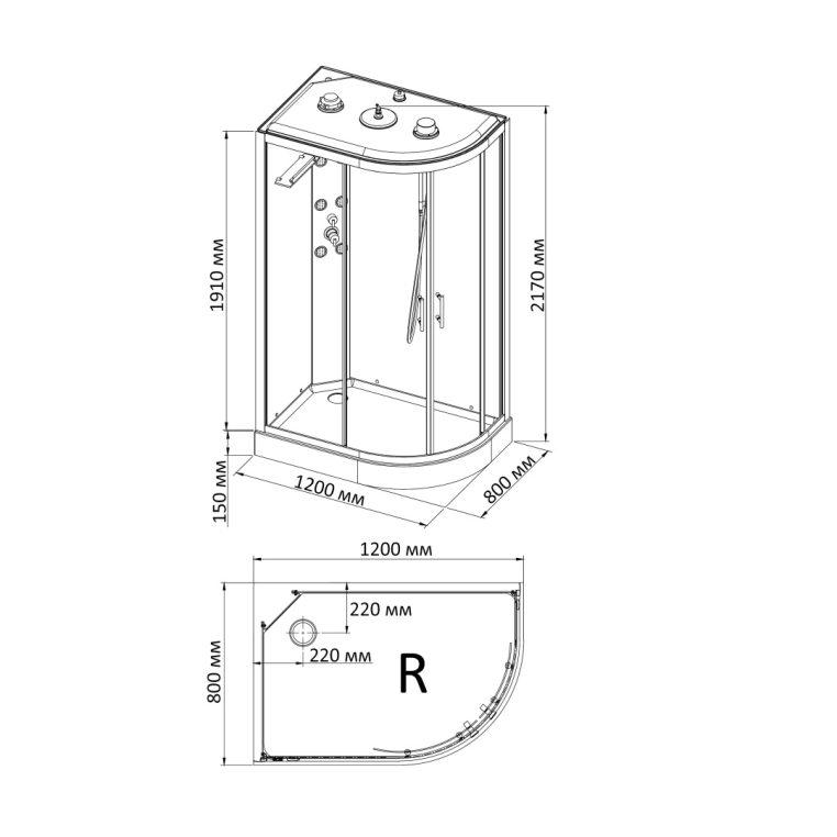 Цвет душевой кабины: стекло/прозрачное акрил/белый