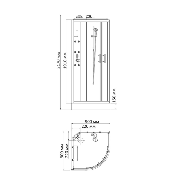 Душевая кабина с гидромассажем Bandhours Bora A 90x90 160141101