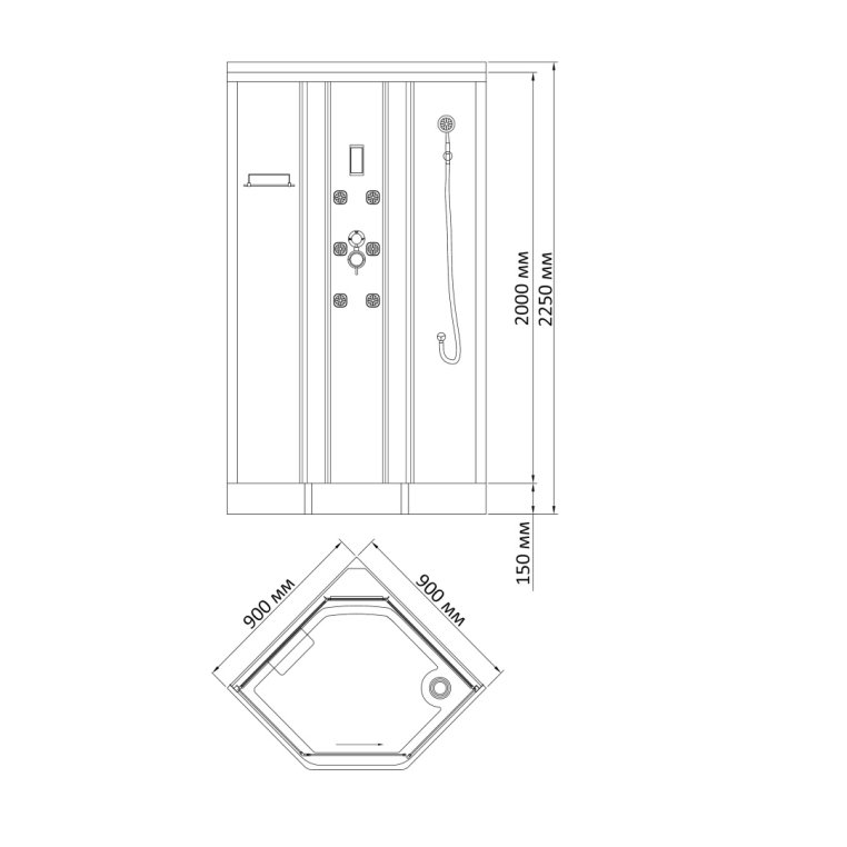 Душевая кабина с гидромассажем Bandhours Clio A 90x90 160161501