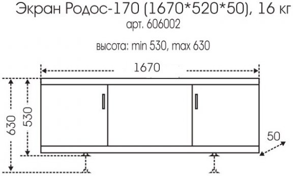 Экран для ванны СаНта Родос 170 606002