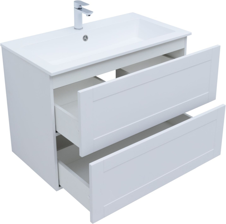 Тумбы комплектуются раковиной Электра 60/70/80/90 (литьевой мрамор) или столешницей Терра (МДФ, толщина 20 мм в пленке ПВХ в цвет тумбы) с накладной раковиной.
