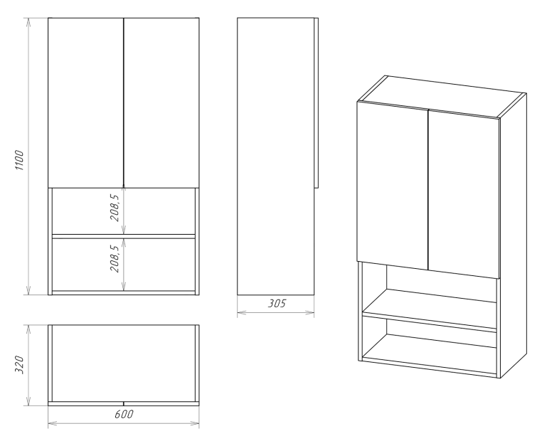 с дверцами, с полками